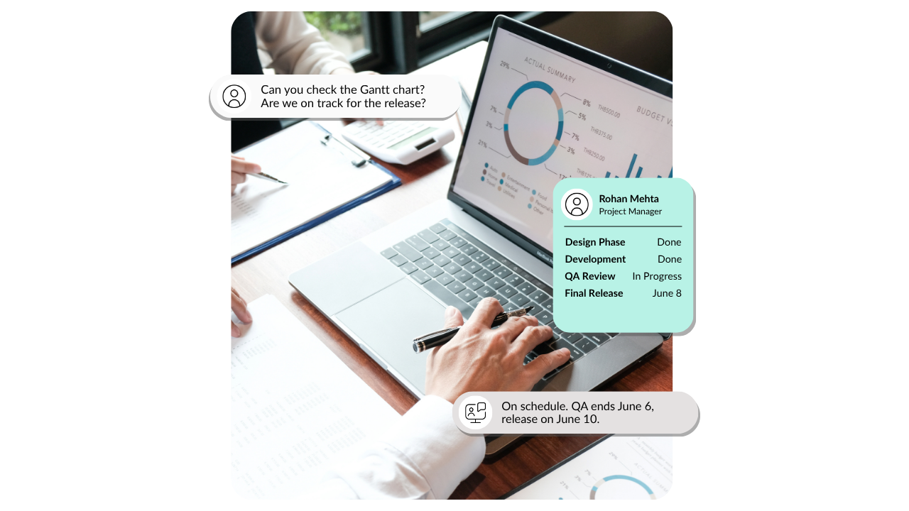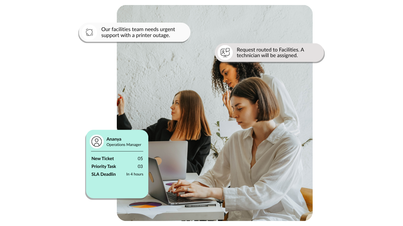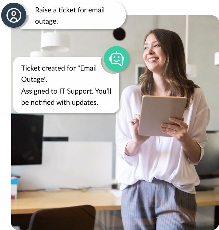 Let ourAI Bot handles tasks for you—just say it to create tickets, fetch data, or guide users.